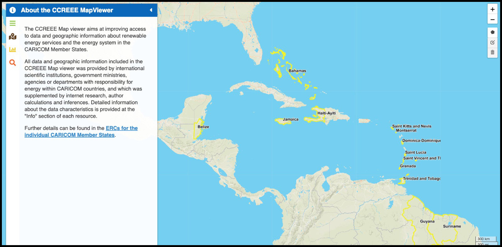 The CCREEE Map viewer aims at improving access to data and geographic information about renewable energy services and the energy system in the CARICOM Member States