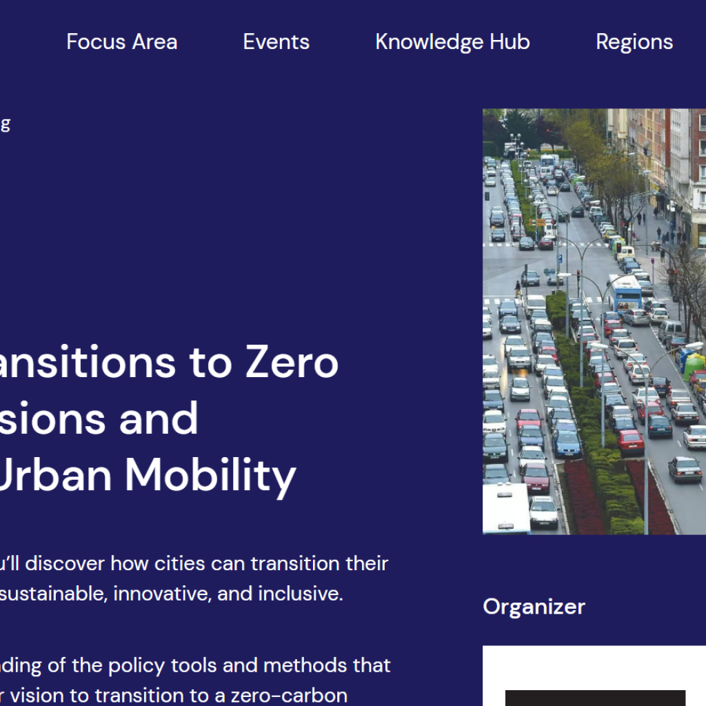 4-week course on transition their mobility systems of cities to become sustainable, innovative, and inclusive, considering policy, traffic management, and streetscape design. The course can be accessed via Achieving Transitions to Zero Carbon Emissions and Sustainable Urban Mobility