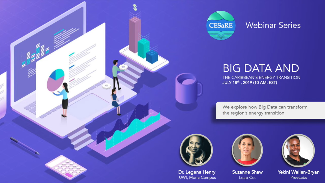 The CESaRE Webinar Series entitled Big Data and the Caribbean's Energy Transition featuring Dr. Legena Henry, Susanna Shaw and Yekini Wallen-Bryan. The webinar looks into how Big Data can transform the region's energy transition.