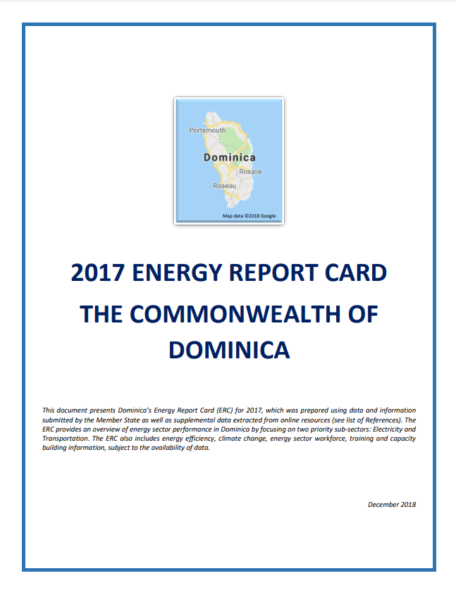The 2017 Energy Report Card for Dominica provides an overview of energy sector performance and includes energy efficiency, projects, technical assistance, workforce, training and capacity building information, subject to the availability of data. Key Words: ERC, Energy Report Card
